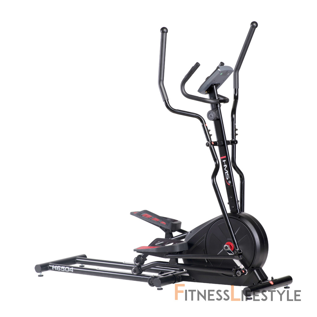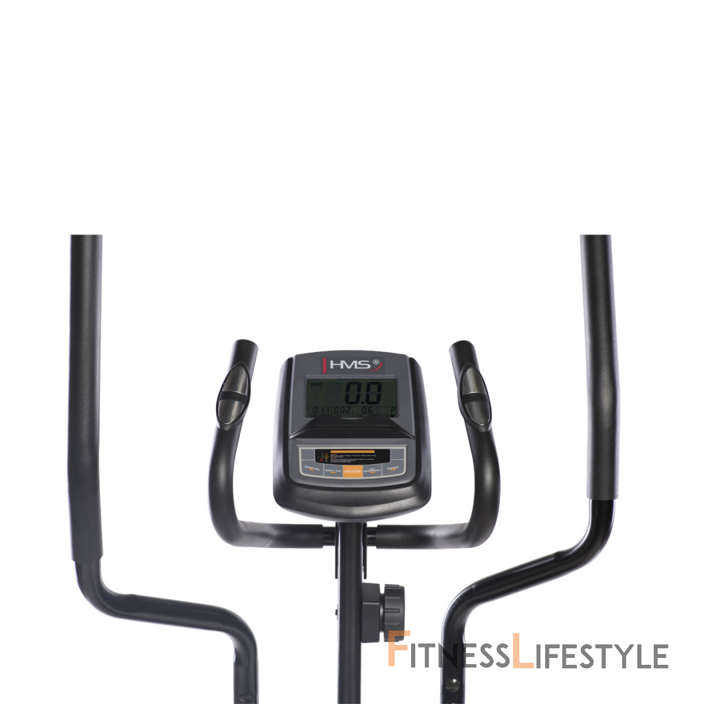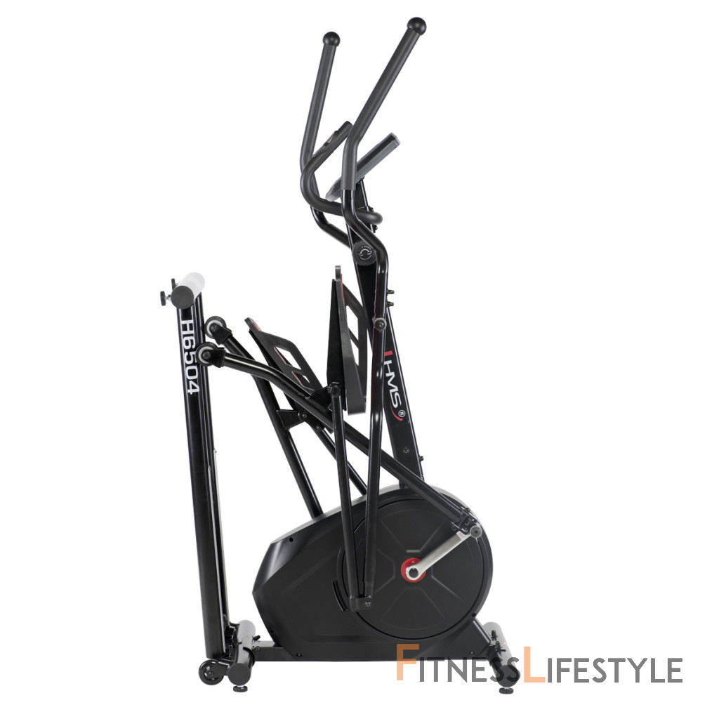 Magnetický eliptický trenažér HMS H6504 je univerzálne zariadenie pre celkové zlepšenie zdravia, zníženie telesného tuku a zlepšenie účinnosti organizmu. Model H6504 je vybavený 8-mi kilogramovým zotrvačníkom a manuálne ovládanou, magnetickou brzdou. Nášľapy sú opatřeby protišmykovou gumou pre pohodlné cvičenie. Príjemnou drobností je možnosť zdvihnutie lyžín pre úsporu miesta, keď trenažér nie je používaný. Veľký LCD displej počítača prehľadne zobrazuje všetky dôležité informácie počas tréningu.