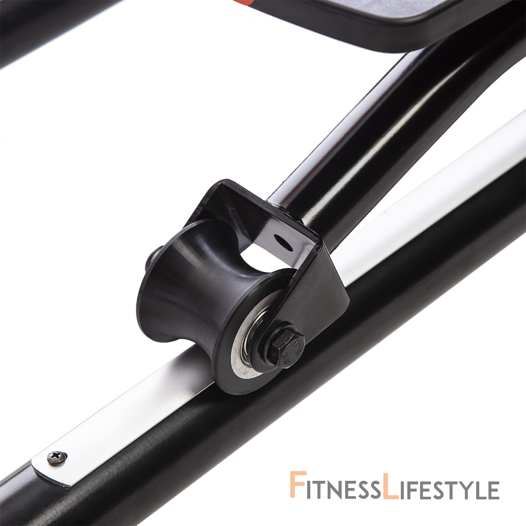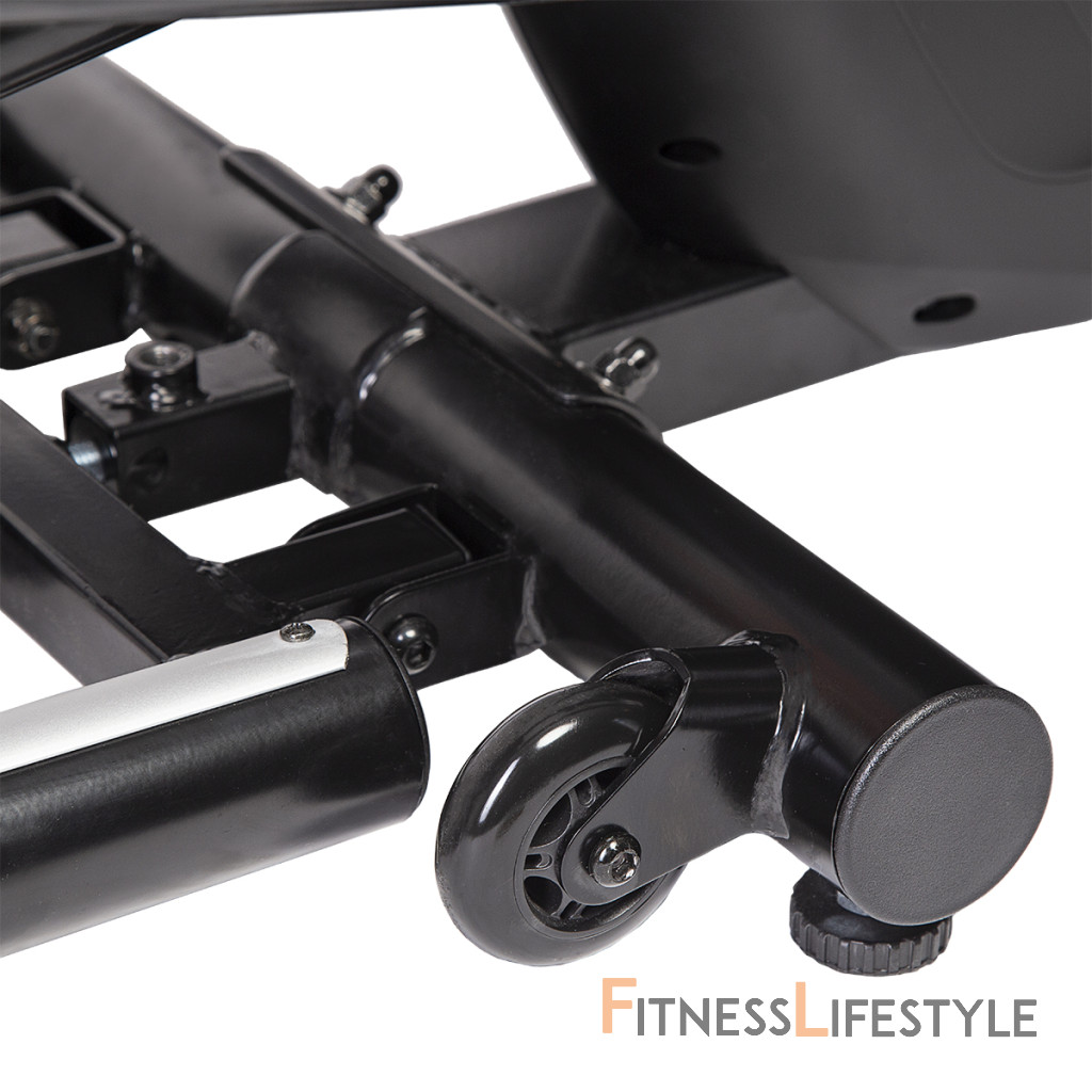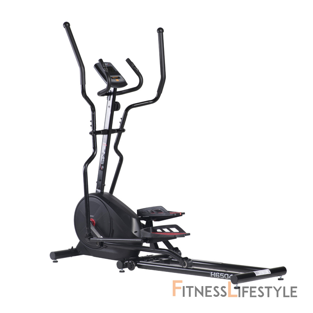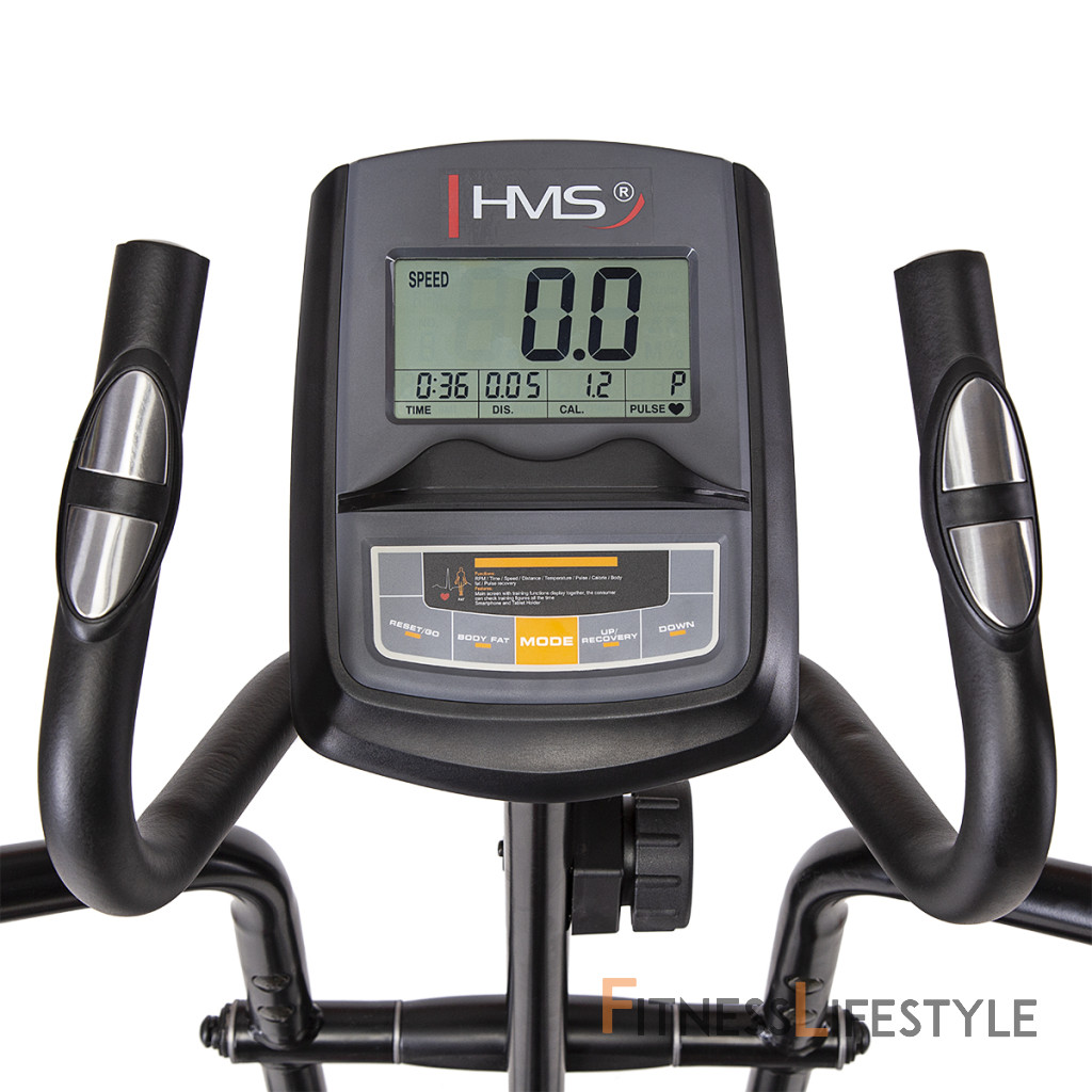 Magnetický eliptický trenažér HMS H6504 je univerzálne zariadenie pre celkové zlepšenie zdravia, zníženie telesného tuku a zlepšenie účinnosti organizmu. Model H6504 je vybavený 8-mi kilogramovým zotrvačníkom a manuálne ovládanou, magnetickou brzdou. Nášľapy sú opatřeby protišmykovou gumou pre pohodlné cvičenie. Príjemnou drobností je možnosť zdvihnutie lyžín pre úsporu miesta, keď trenažér nie je používaný. Veľký LCD displej počítača prehľadne zobrazuje všetky dôležité informácie počas tréningu.