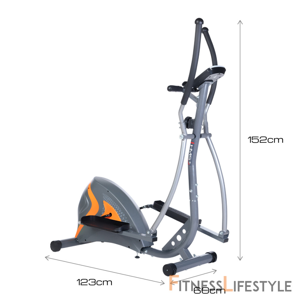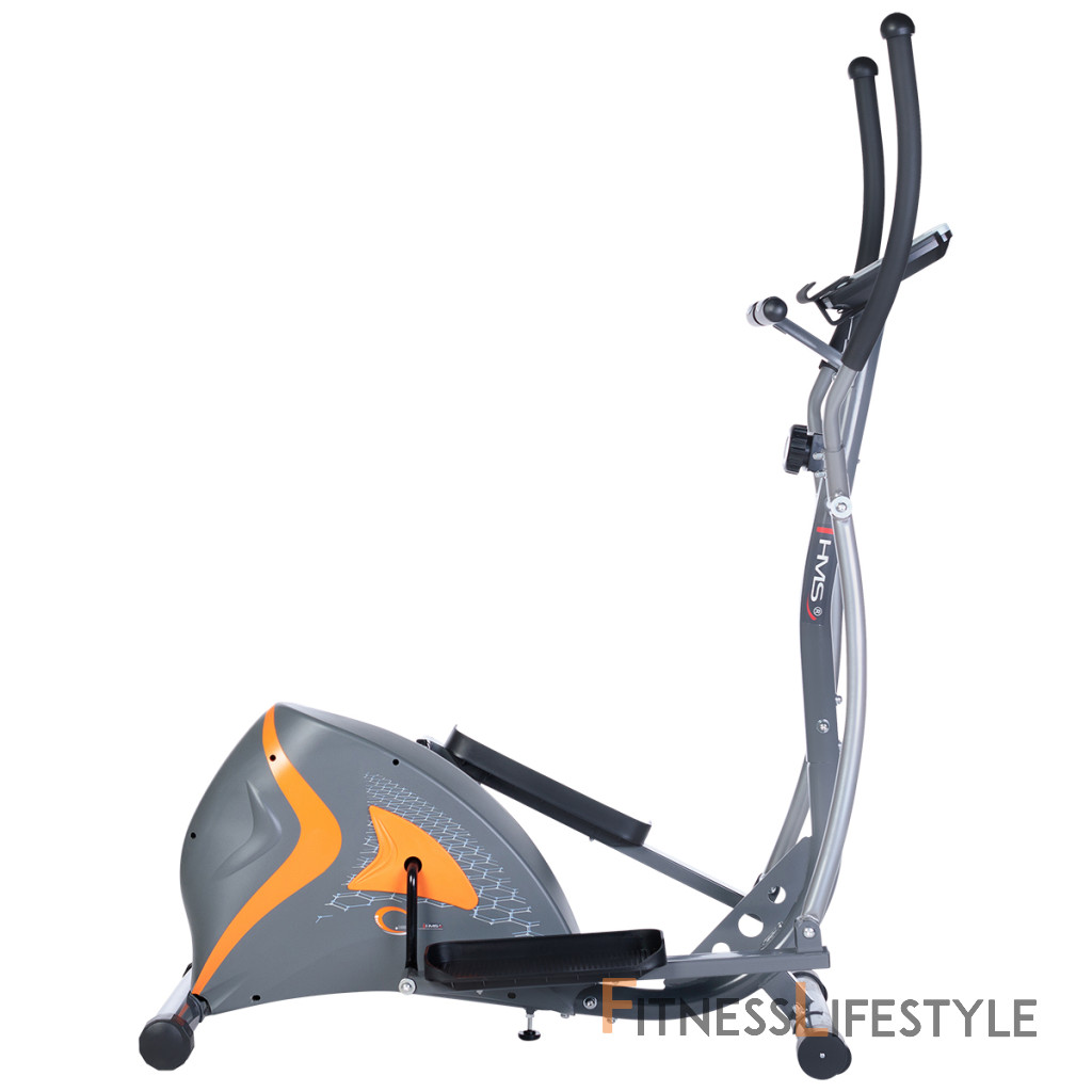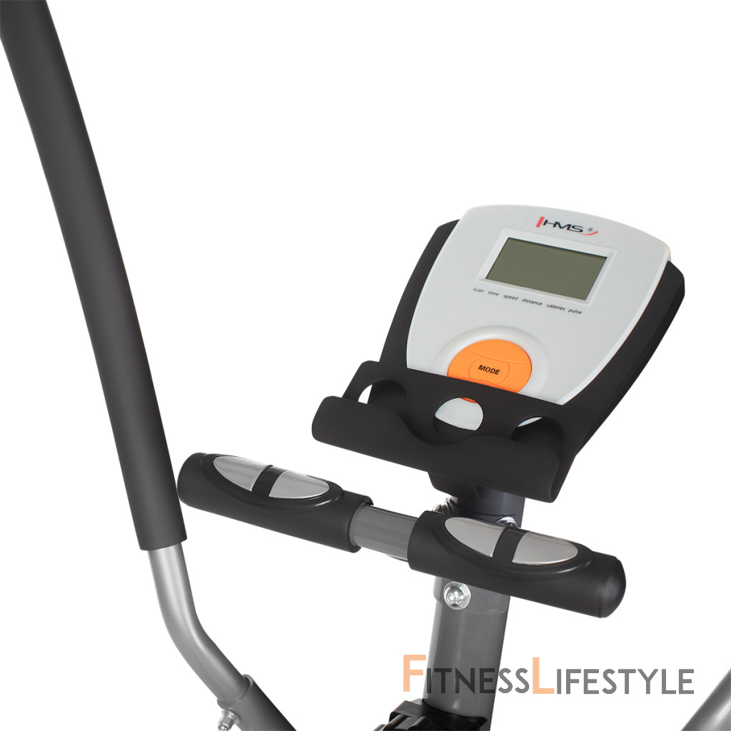 Magnetický eliptický trenažér HMS H2205 je univerzálne zariadenie pre celkové zlepšenie zdravia, zníženie telesného tuku a zlepšenie účinnosti organizmu. Model H2205 je vybavený 6-tich kilogramovým zotrvačníkom a manuálne ovládanou, magnetickou brzdou. Nášľapy sú opatřeby protišmykovou úpravou pre pohodlné cvičenie. Veľký LCD displej počítača prehľadne zobrazuje všetky dôležité informácie počas tréningu, pod ním nájdeme stojanček pre mobilné zariadenia a elektródy pre snímanie tepovej frekvencie.