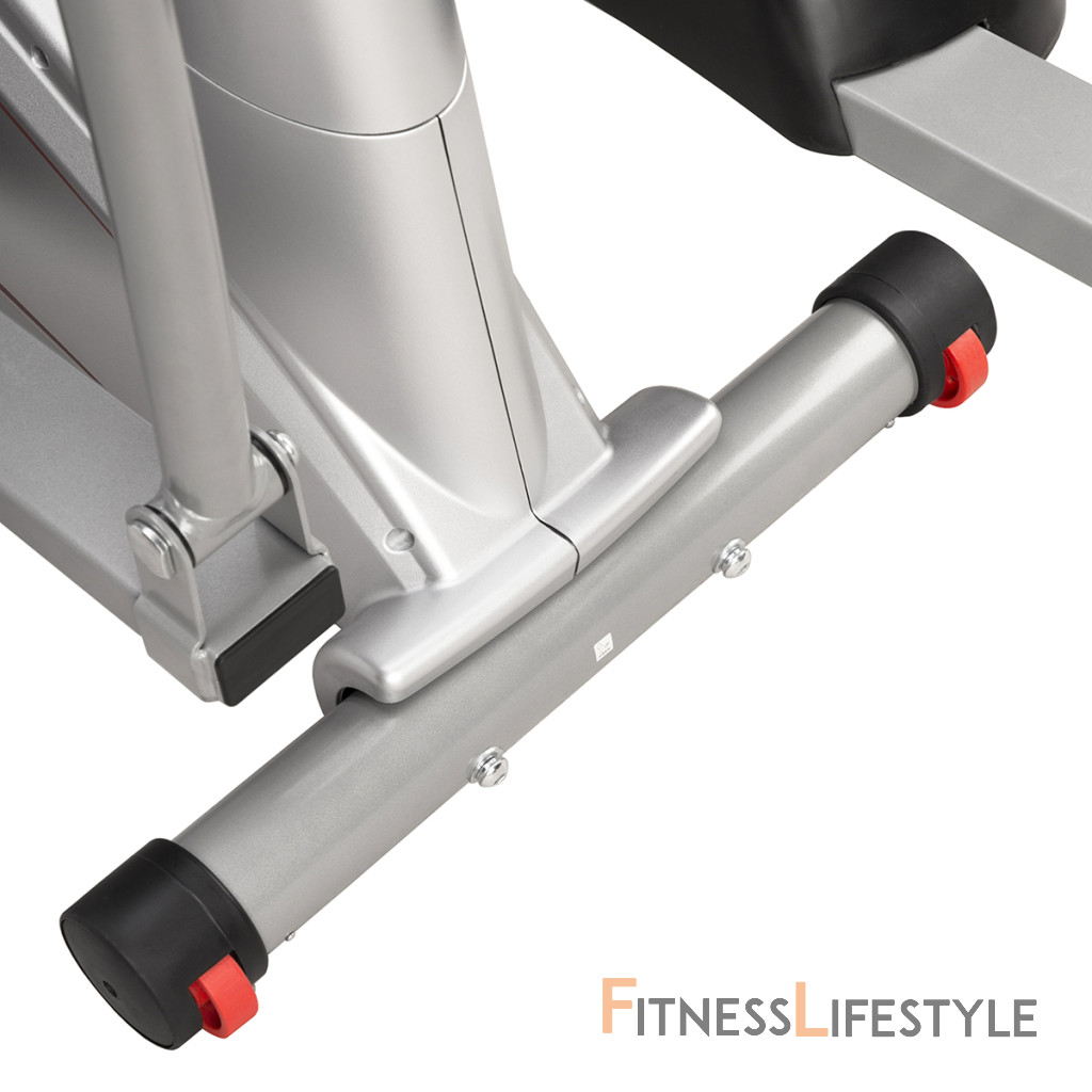 Predné stabilizátor má kolieska pre ľahký transport trenažéra a zadný stabilizátor disponuje skrutkovateľným podložkami pre vyrovnanie prístroja do roviny.