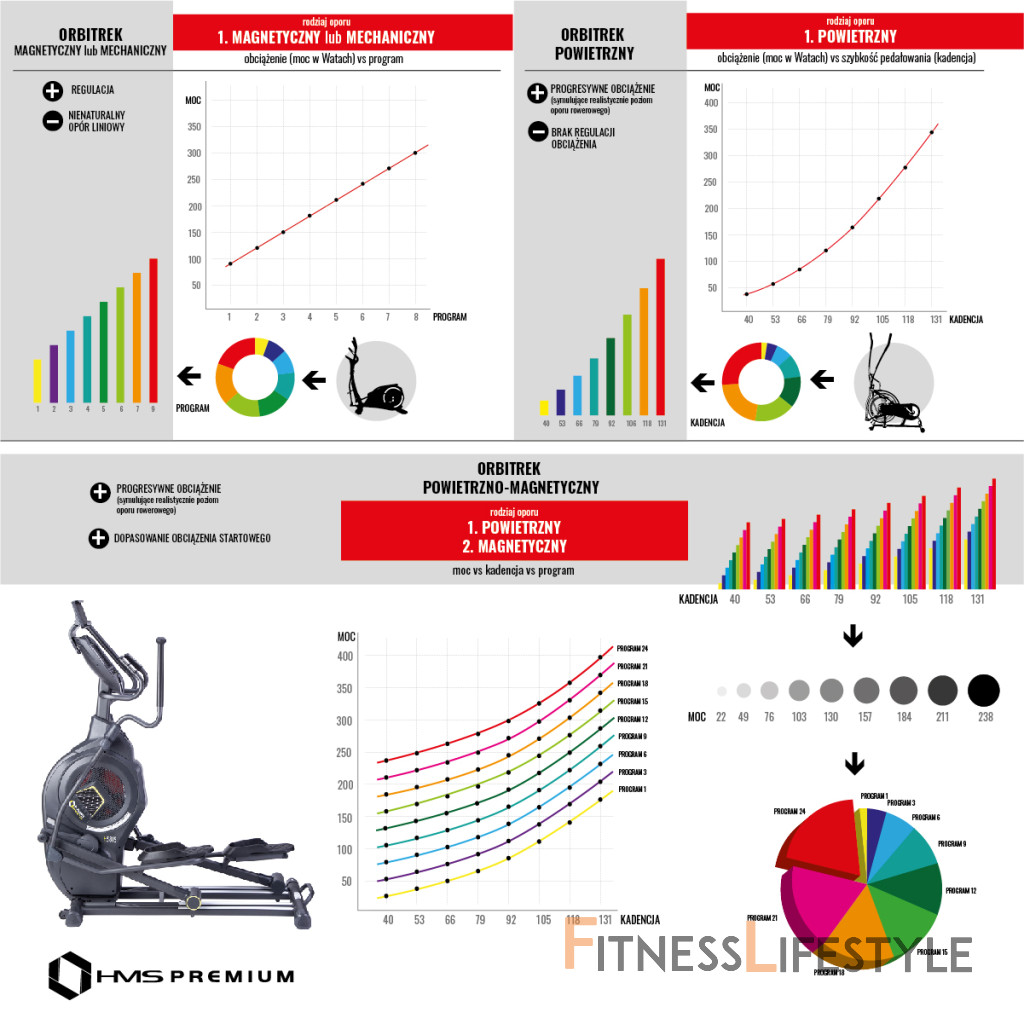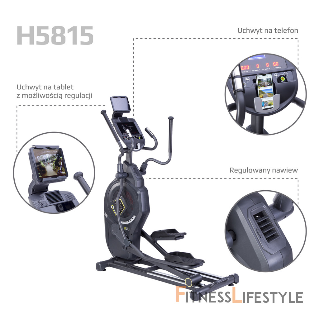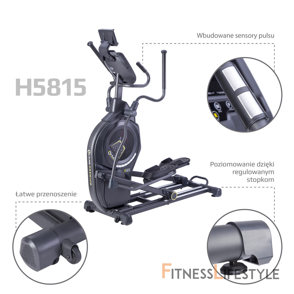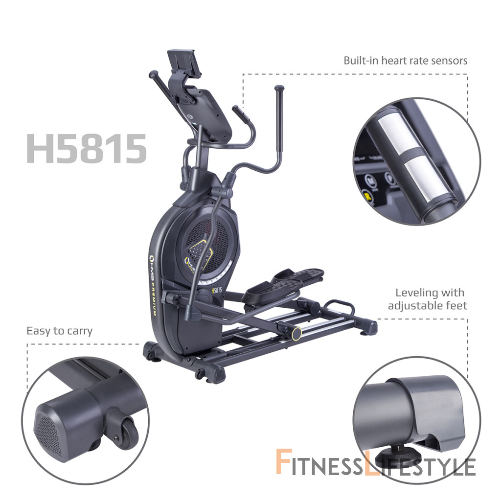 Eliptický trenažér HMS Premium H5815 spadá do kategórie Semi Commercial a môže byť teda použitý ako v domácej telocvični, tak v súkromných kluboch a hotelových posilňovniach. Najväčšou výhodou modelu je systém záťaže, ktorý kombinuje klasickú, magnetickú brzdu s veterným odporom známym z Air biku. Kombinácia magnetické a lineárne záťaže spolu s 8-mi kilogramovým záťažovým okolo zaisťujú plynulý pohyb, ktorý u bežného trenažéra nie je možný.