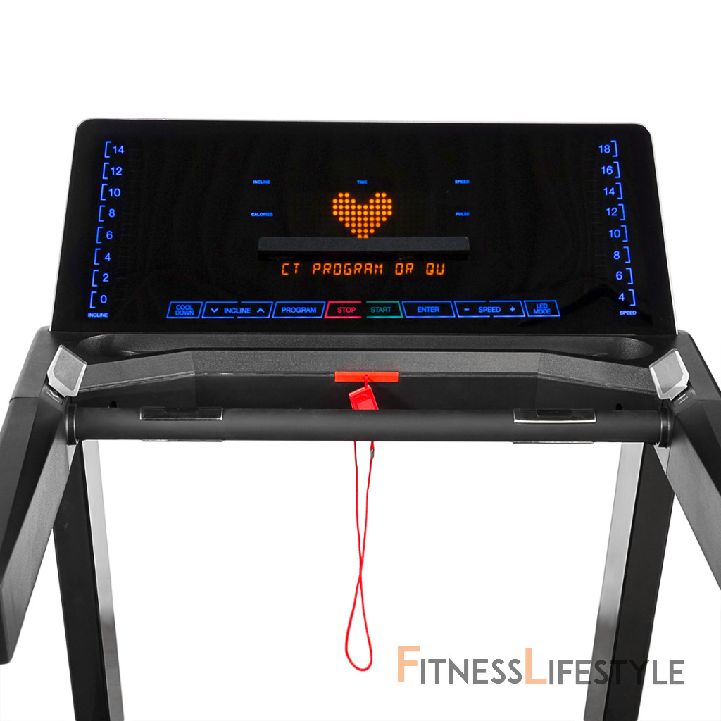 Moderný dizajn trenažéra je podčiarknutý LED pásikmi, ktoré osvetľujú bežeckú plochu.