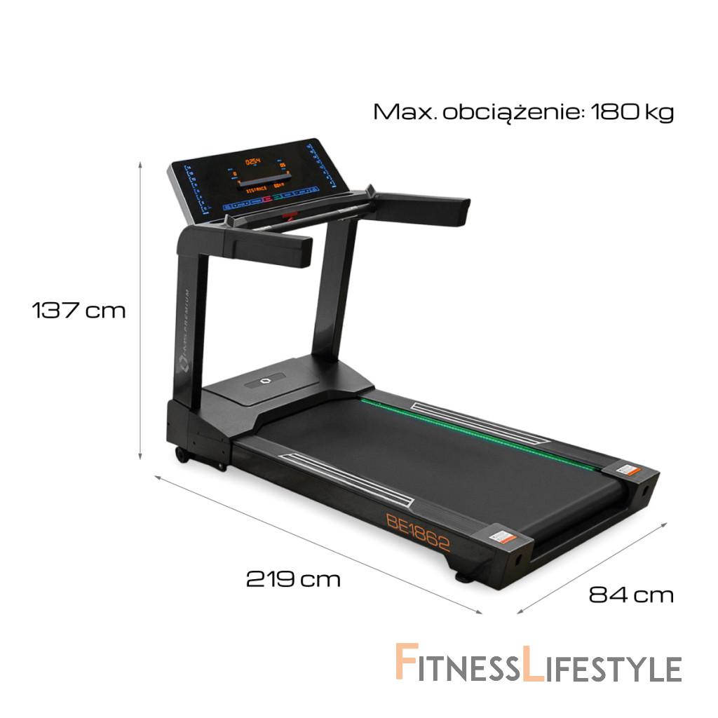 Rýchlosť behúňa je plynule nastaviteľná v rozsahu 0,5 – 24 km/h. Pás BE1862 je tak vhodný ako pre úplných začiatočníkov, tak aj pre pokročilých bežcov. Pre naozaj náročný tréning je trenažér vybavený elektronickou reguláciou náklonu v rozsahu 0 - 15 ° a je možné ho plynule nastaviť pomocou tlačidiel na ovládacom paneli.