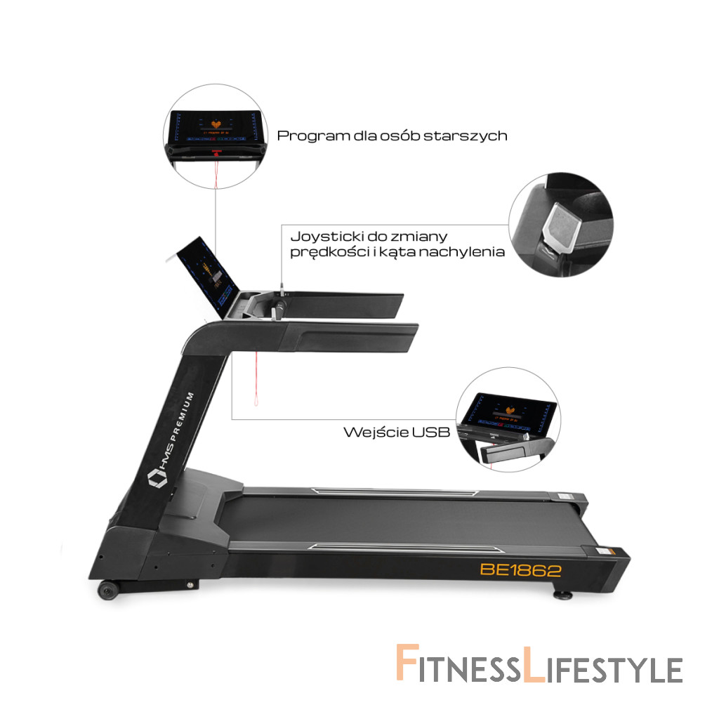 Trenažér HMS BE1862 je bežecký pás patriaci do kategórie Semi-commercial a je teda vhodný do domácností, súkromných klubov, hotelových posilňovní atď.