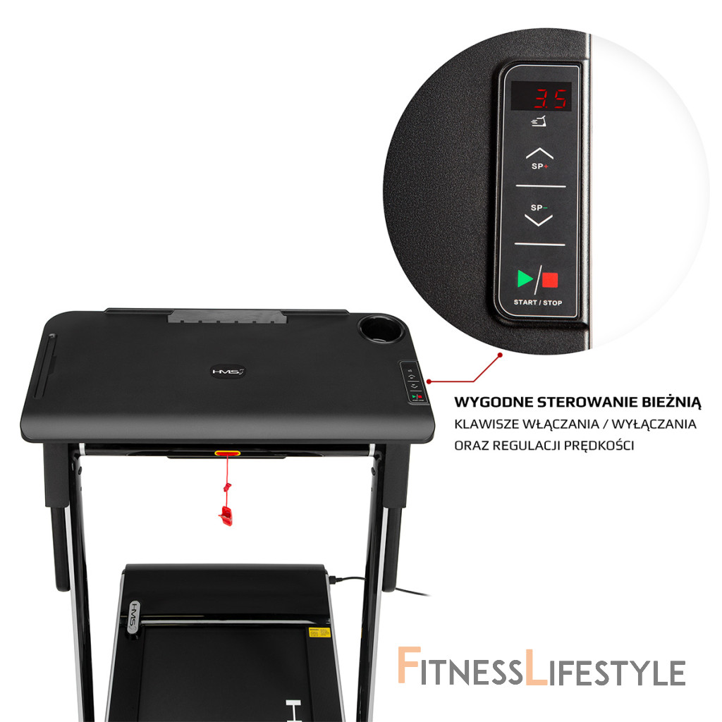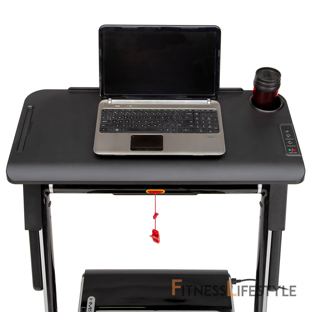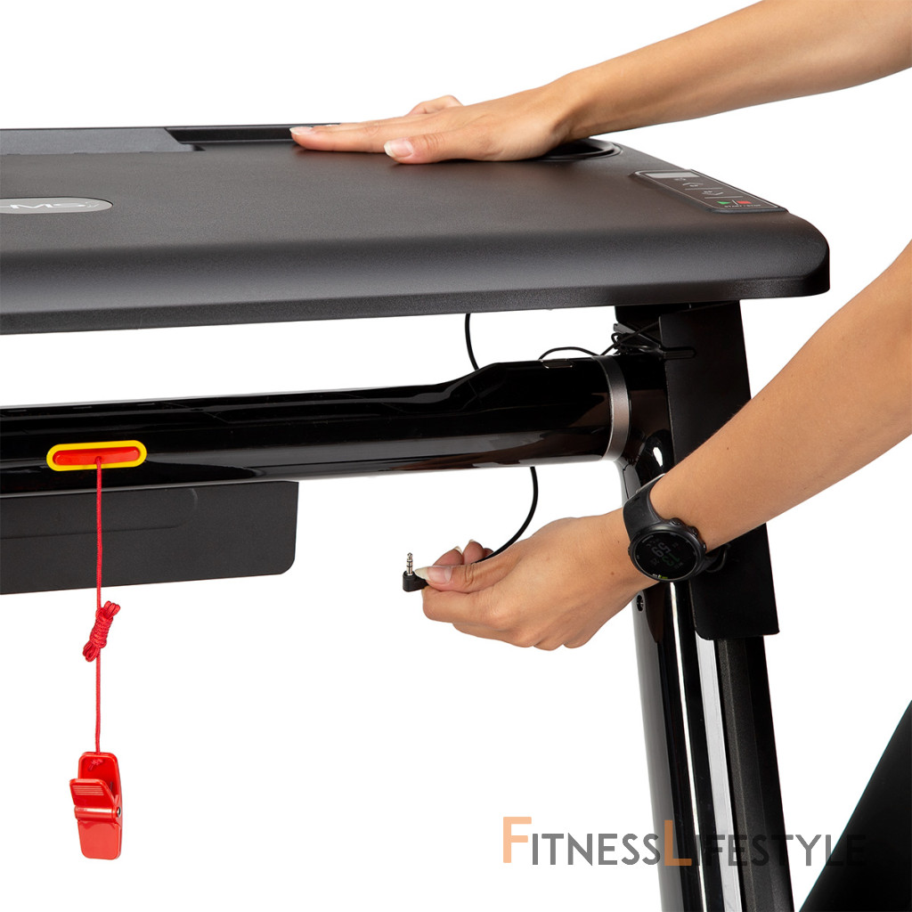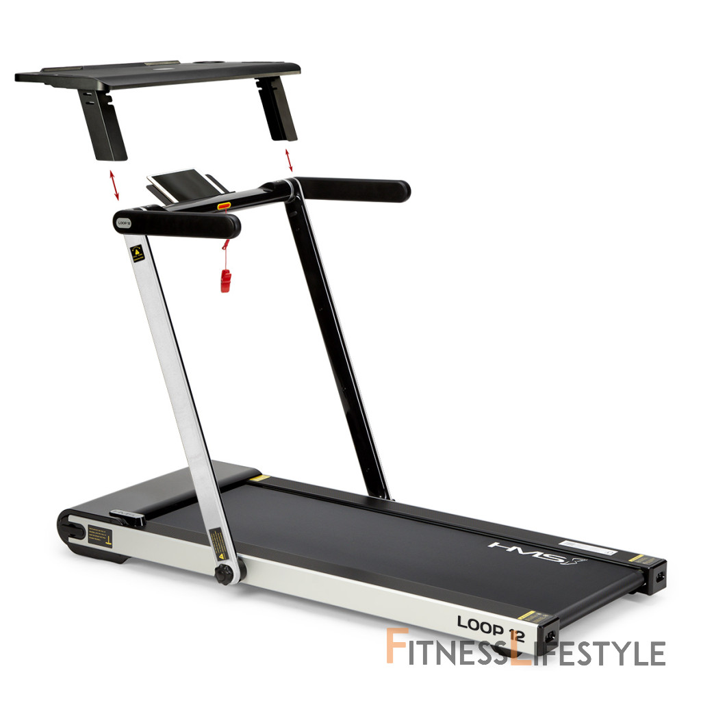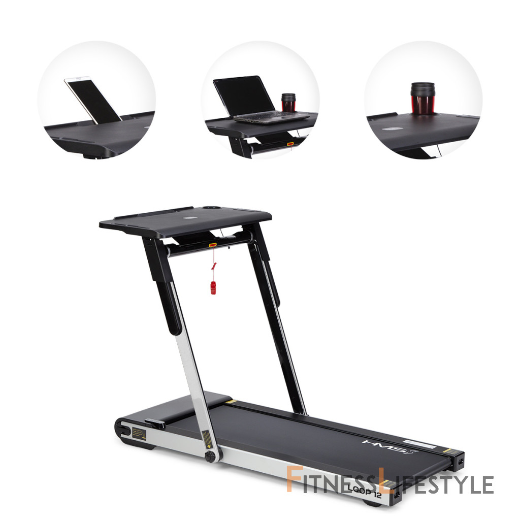 Náš model LOOP12 sa od konkurencie odlišuje možnosťou nasadenia pracovného pultu, na ktorý si môžete odložiť napríklad notebook, knižku alebo obľúbenú kávu. Po nasadení stola sa rýchlosť bežeckej plochy obmedzí na maximálnu rýchlosť 6 km/ha po prepojení pultu s konzolou je možné upravovať rýchlosť priamo z ovládania na pravej strane stola.