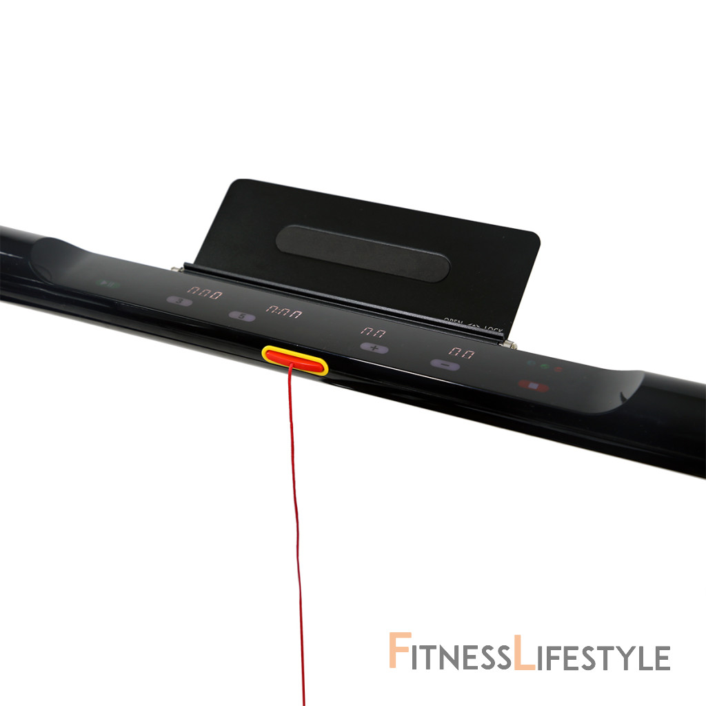 Ovládací panel zobrazuje všetky dôležité údaje počas tréningu (rýchlosť, čas, vzdialenosť, spálené kalórie a počet krokov). Po stranách displeja nájdeme tlačidlá na zastavenie a spustenie pásu, reguláciu rýchlosti a 2 tlačidlá na skokovú zmenu rýchlosti na 3 a 5 km/h. Počítač tiež disponuje rozhraním bluetooth na spojenie s tréningovou aplikáciou FitShow, pomocou ktorej môžeme sledovať vývoj našej kondície a zároveň nám umožňuje nastavenie tréningového programu, podľa ktorého trenažér automaticky mení rýchlosť bežeckej plochy.