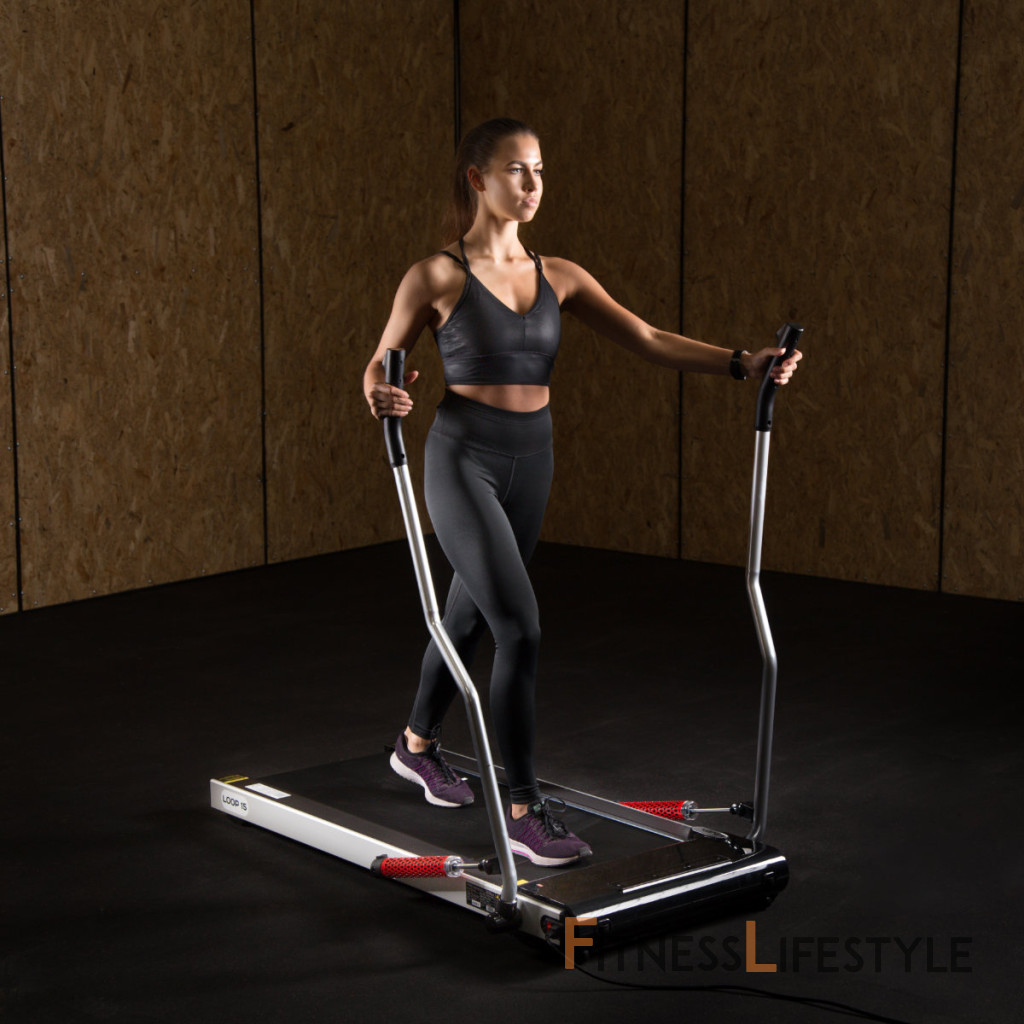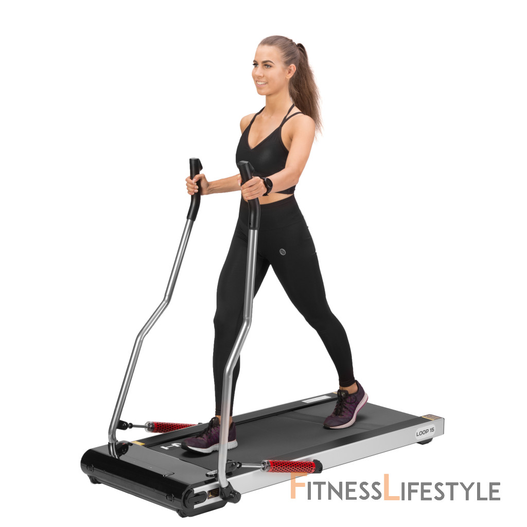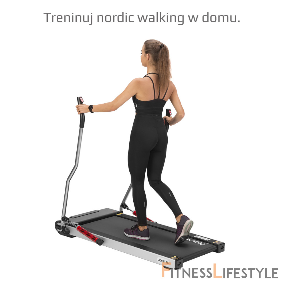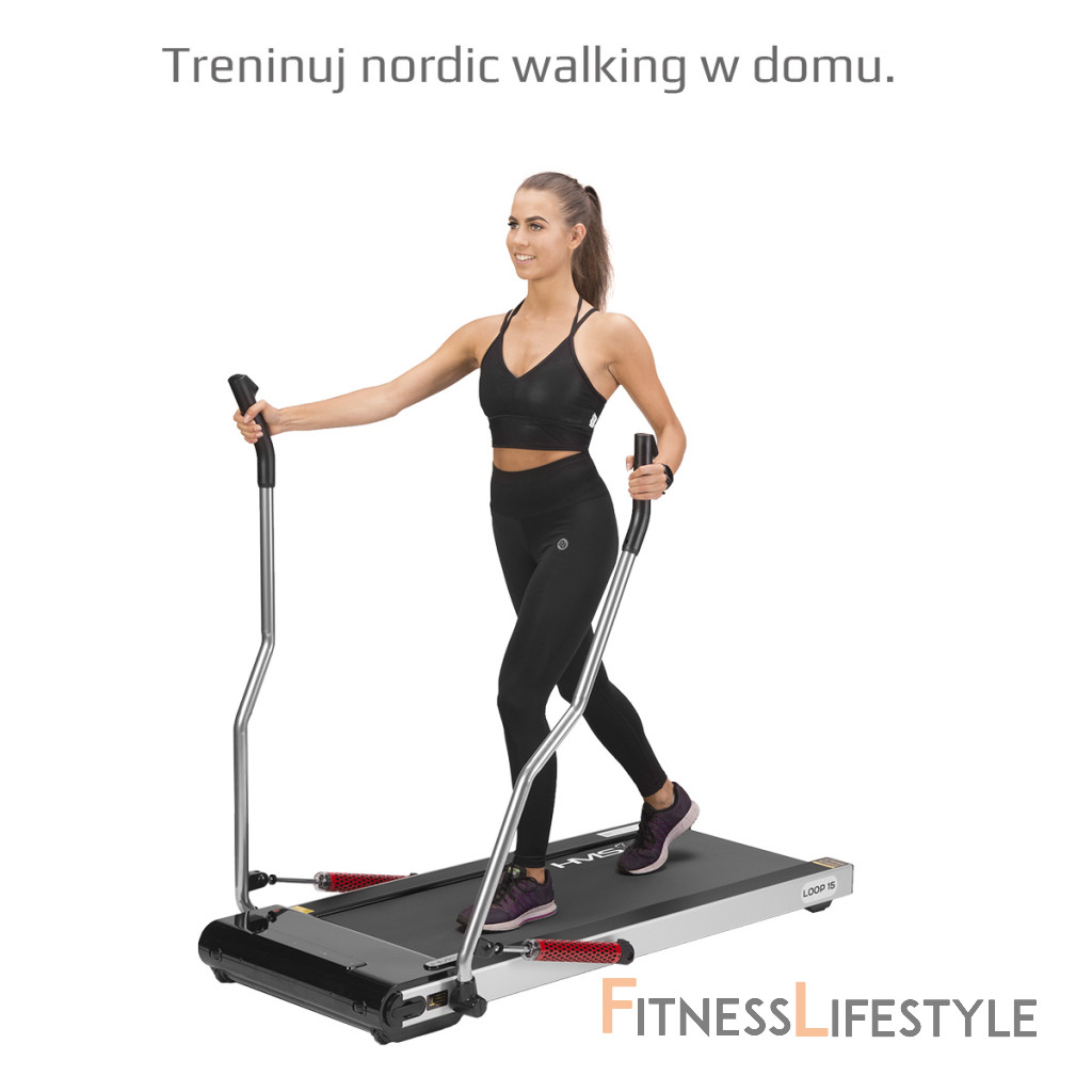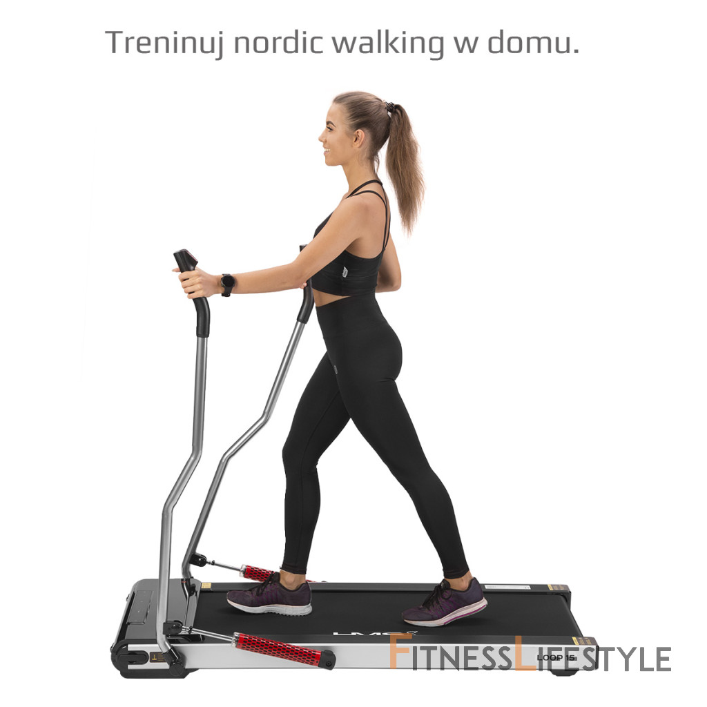Nordic walking zapája do pohybu oveľa viac svalov, než bežná chôdza, preto je oveľa efektívnejšie pri spaľovaní tukov a budovaní kondície ako práve bežná chôdza. Madlá sú opatrené piestami, ktoré zaručujú plynulejší pohyb pri minimálnom odpore. Maximálna rýchlosť LOOP15 je 6 km/h a jej plynulá regulácia sa vykonáva pomocou tlačidiel na koncoch madiel. Podlhovastý displej zobrazuje prehľadne všetky potrebné údaje (rýchlosť, čas tréningu, vzdialenosť, počet krokov a počet spálených kalórií)