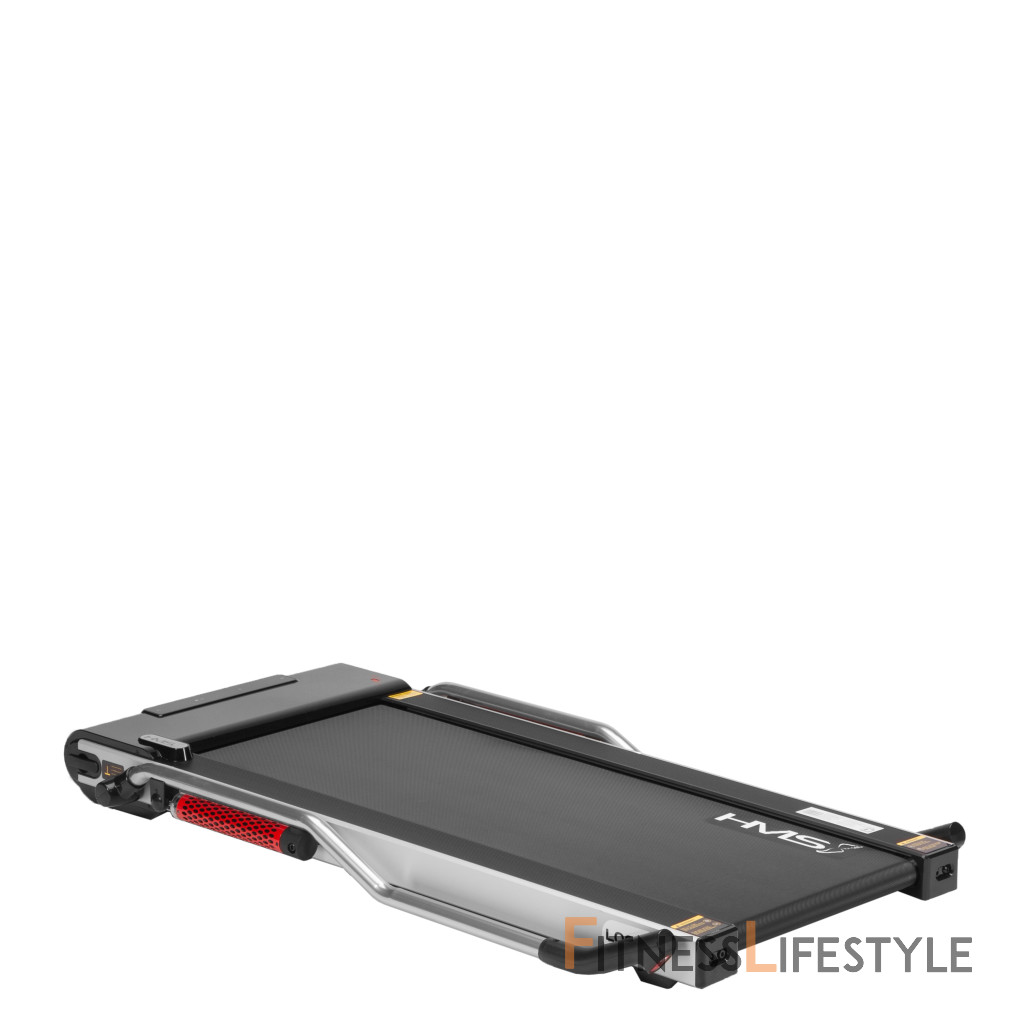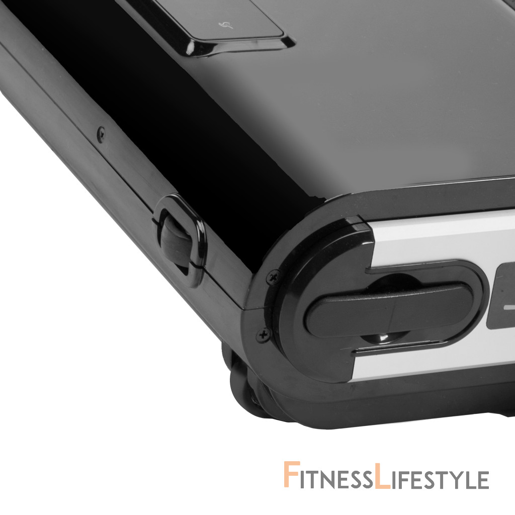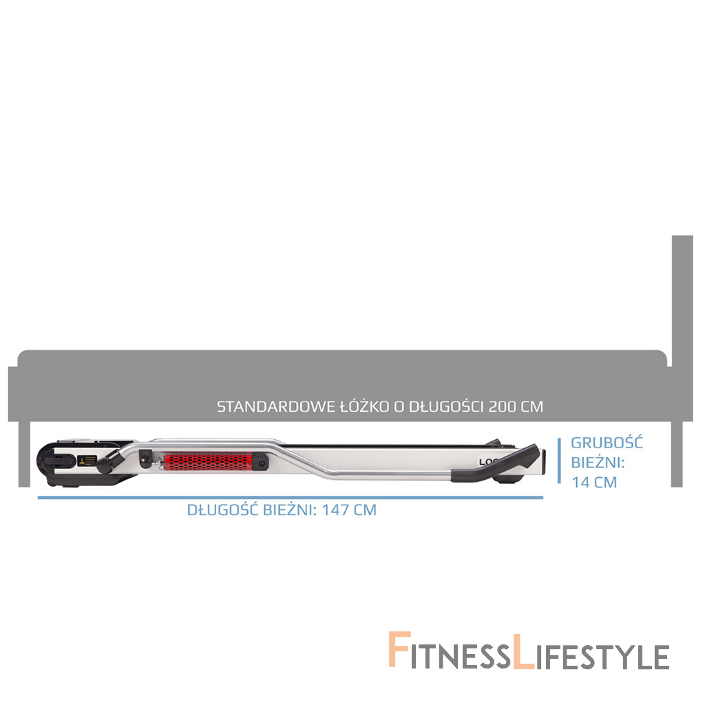 Pri navrhovaní trenažéra sme sa snažili o čo najužšiu konštrukciu. Výsledkom je rozmer (so sklopenými madlami) 147 x 77 x 14 centimetrov. Vďaka týmto rozmerom dokážete trenažér schovať napríklad pod posteľ, alebo za skriňu. Kolieska na čele LOOP15 Vám úschovu ešte uľahčia.