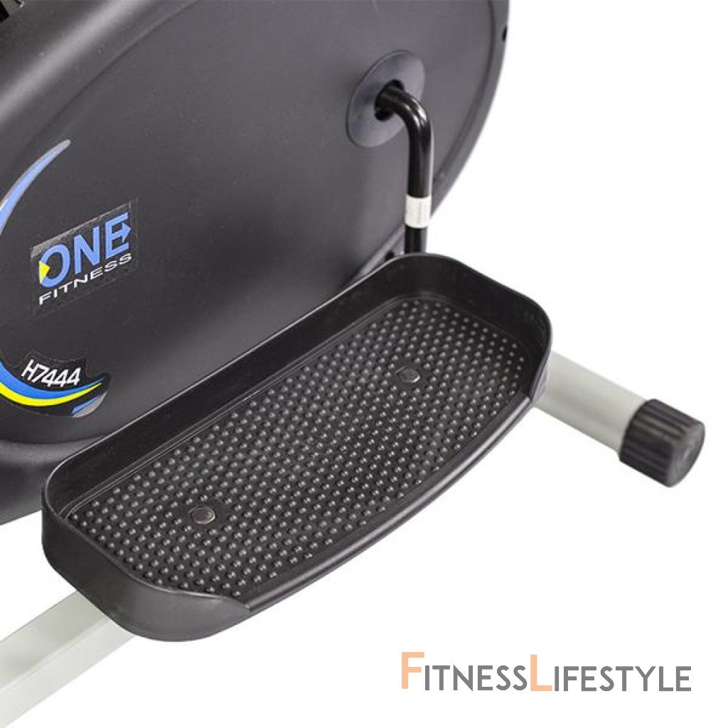 Ovládanie záťaže je u eliptického trenažéra ONE H 7444 riešené Air systémom a 3 kg záťažovým okolo. Kľuky pedálov sú jednodielne a ich stredy sú uložené na venčekových ložiskách, čo zaisťuje dlhú životnosť komponentov. Eliptical tiež disponuje pevnými aj pohyblivými rukoväťami. Počítač crossového trenažéra ONE H 7444 zaznamenáva čas cvičenia, rýchlosť, vzdialenosť a spotrebu kalórií.