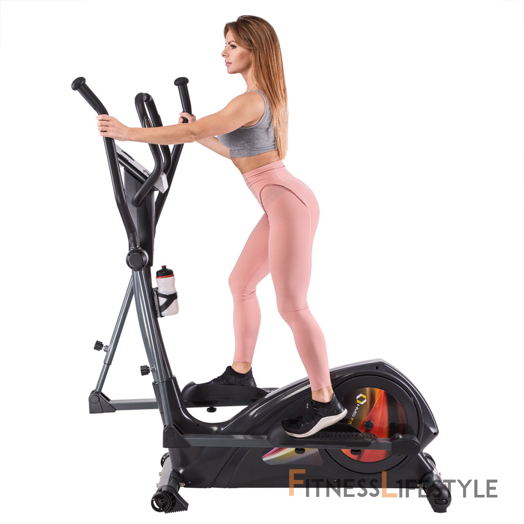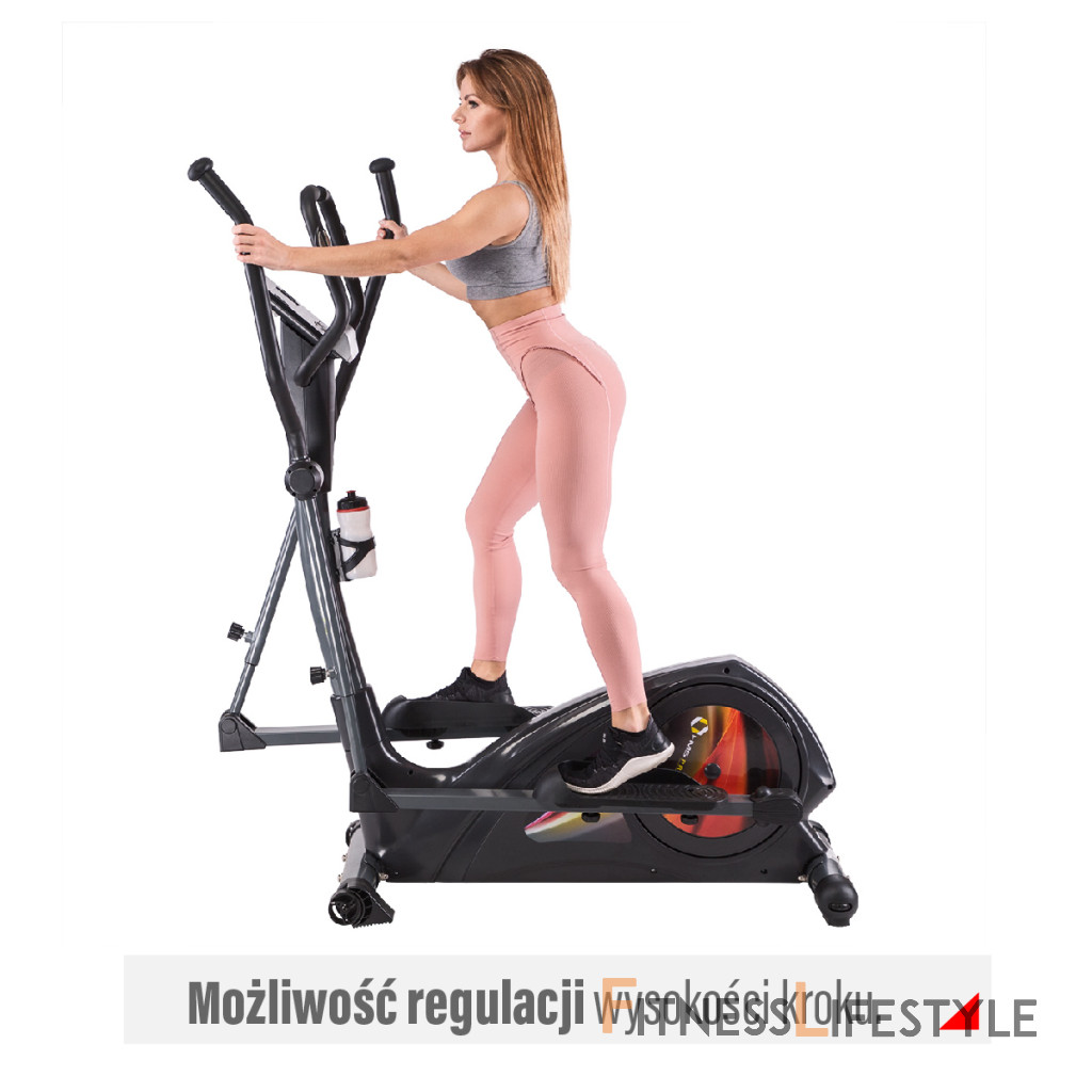Inovovaný crossový trenažér je vyrobený z vysoko kvalitných materiálov pre zabezpečenie dlhého a bezporuchovej prevádzky. Stroj je určený k domácemu cvičenia a bol navrhnutý tak aby čo najúčinnejšie rozhýbal svaly vášho tela a pritom pomáhal spaľovať tuk. Eliptical je vybavený kvalitným systémom magnetického odporu zaisťuje tichý a plynulý chod. Ako jeden z mála modelov v tejto cenovej kategórii je vybavený počítačom s veľkým farebným displejom. Okrem toho má 24 tréningových programov, ktoré spestria bežný tréning